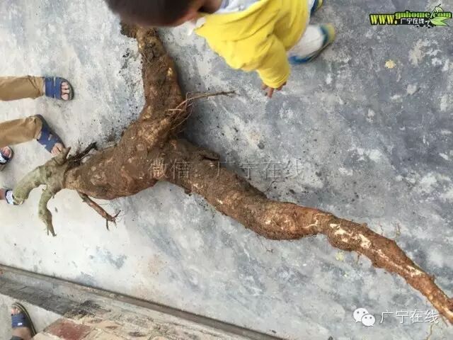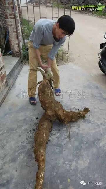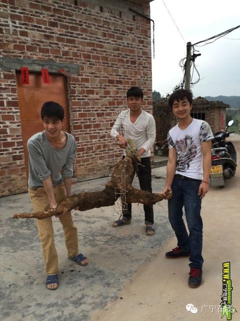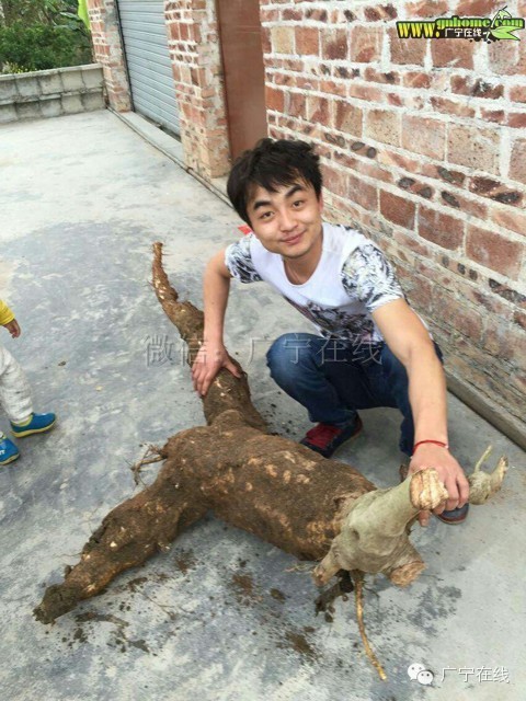 微友报料(已奖励话费),2月27号,广宁横山镇白坎文村村民在自家菜地,挖出两年前种的粉葛,还惊讶甘发现长得像人参,还特别大,大多数村民从小到大没见过这么大,长得那么像人参的粉葛,村民都说能种出这样,真的很少!据知,此超大粉葛约有2米长,重50斤左右,三四个人挖了两个多小时才挖出来! [attach]172741[/attach] |